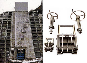 小ダム取水用として最も簡便な装置で、温水取水に適当です。材質は青銅製とし、水密部は、機械加工のうえ、すり合わせを行っています。
